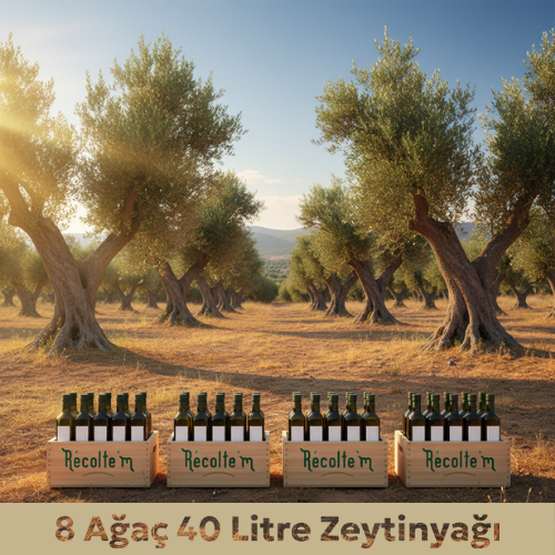 Kimyasal girdi kullanılmadan bakım yapılan 8 ağaçlık zeytinlikte gerçekleştirilen üretim, Récolte’m sistemi üzerinden takip edilir.Hasat sonunda size özel etiketlenmiş 1 litrelik 40 şişe (toplam 40 litre) zeytinyağı teslim edilir.