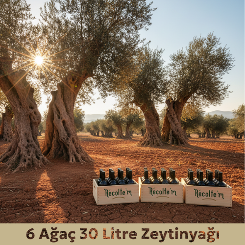 Kimyasal girdi kullanılmadan bakım yapılan 6 ağaçlık zeytinlikte gerçekleştirilen üretim, Récolte’m sistemi üzerinden takip edilir.Hasat sonunda size özel etiketlenmiş 1 litrelik 30 şişe (toplam 30 litre) zeytinyağı teslim edilir.
