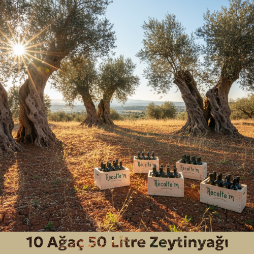 Bu paket ile Milas'ta bulunan 50 m²’lik bir zeytinlik, hasat dönemine kadar sizin adınıza atanır. Kimyasal girdi kullanılmadan, bakım yapılan bu 10 ağaçlık zeytinlikte gerçekleştirilen üretim, Récolte’m sistemi üzerinden takip edilir ve hasat sonunda size özel etiketlenmiş, 1 litrelik 50 şişe zeytinyağı olarak teslim edilir. Récolte’m ile yalnızca zeytinyağı sahibi olmakla kalmaz, üretim sürecinin doğal akışına da dahil olursunuz. Size özel ayrılan alandaki gelişmeleri düzenli olarak takip edebilir, zeytinliğinize dilediğiniz ismi vererek bu yolculuğu kişiselleştirebilirsiniz.